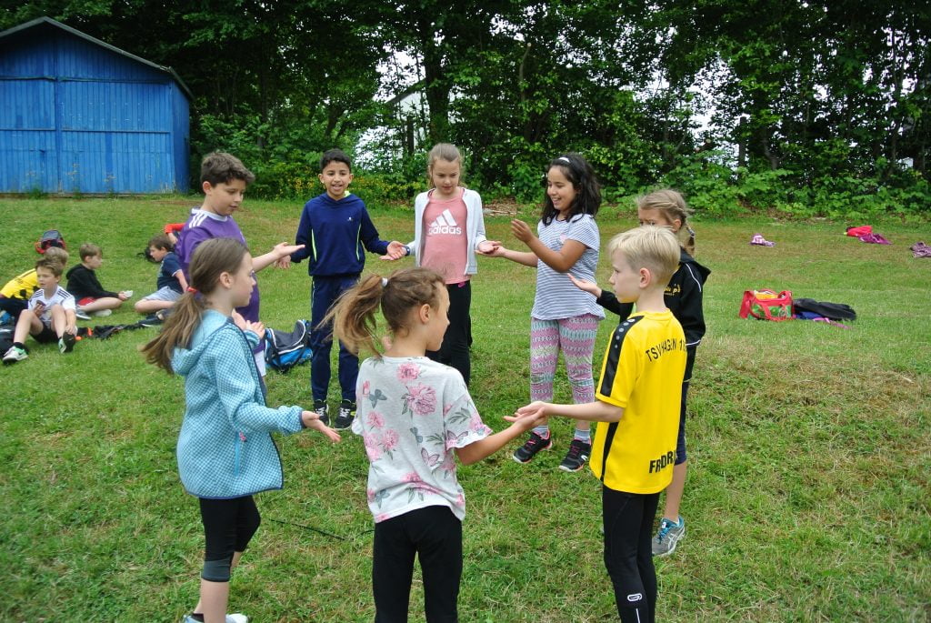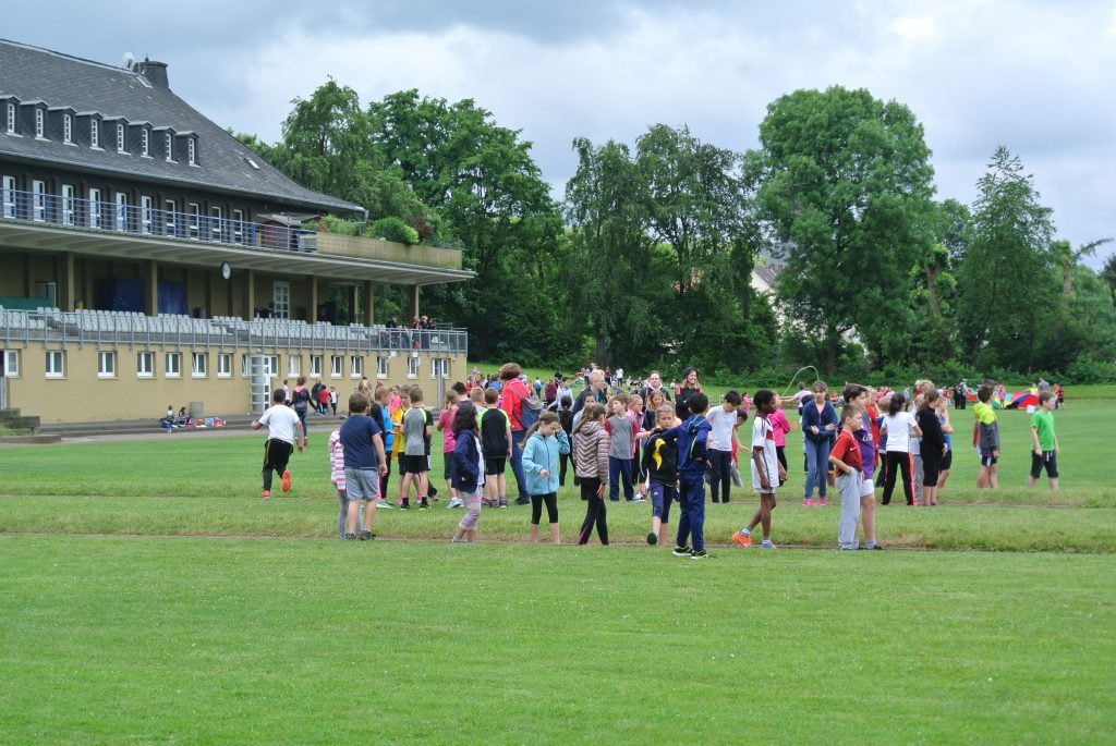 Aber zuerst haben wir uns gemeinsam auf dem Schulhof aufgewärmt…